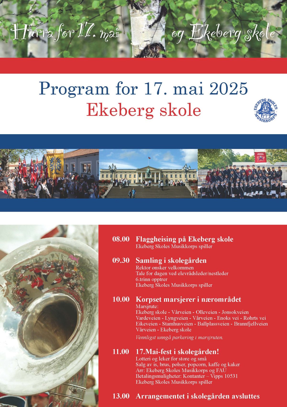 17. mai festen arrangeres av FAU (6. trinn) og Ekeberg Skoles Musikkorps.